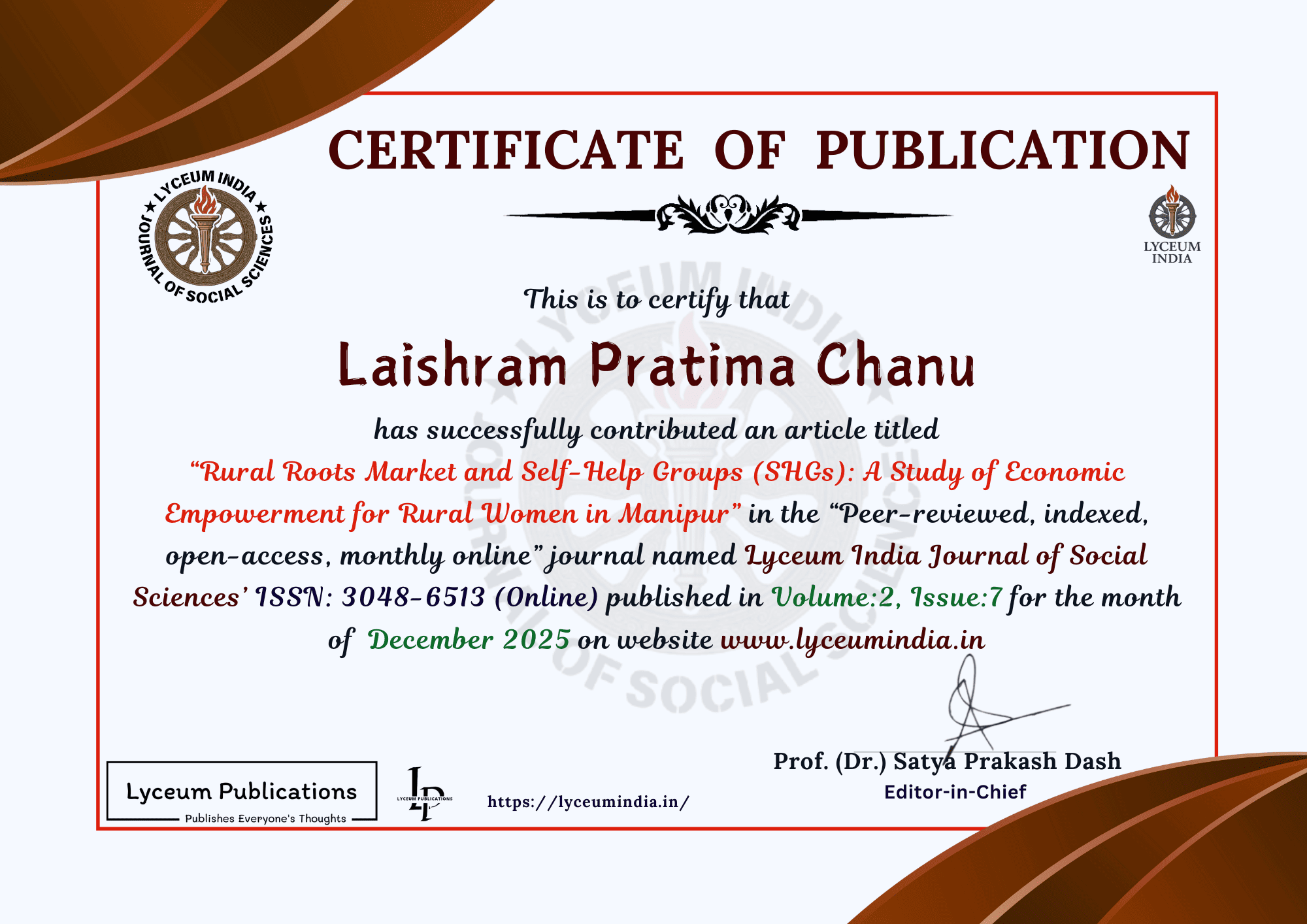 | Author(s): Laishram Pratima Chanu | ||