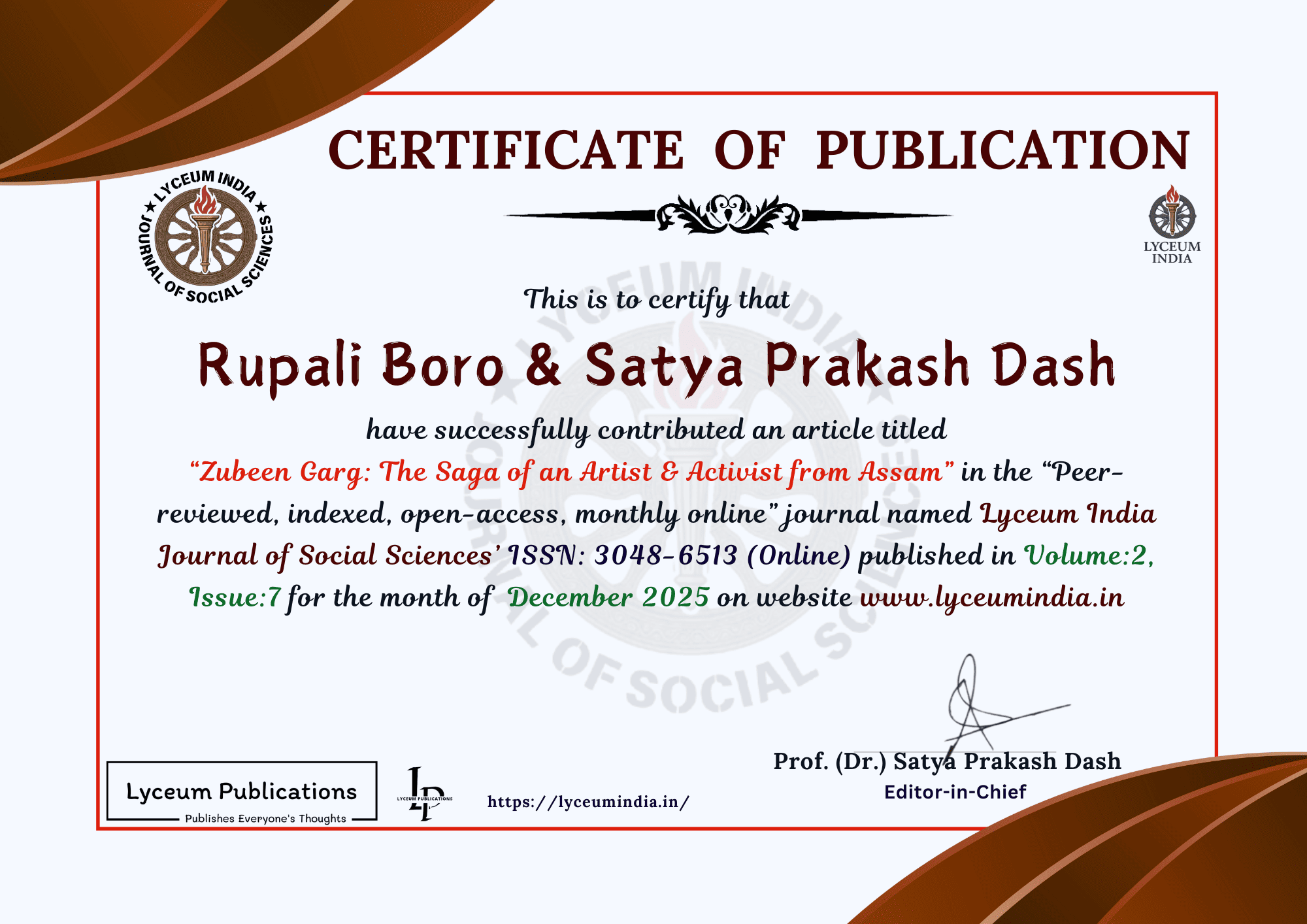 | Author(s): Rupali Boro & Satya Prakash Dash | ||